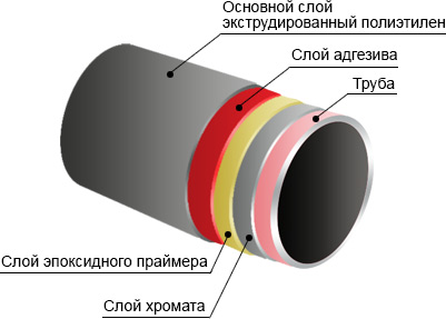 Трехслойное полиэтиленовое покрытие должно иметь следующую конструкцию: